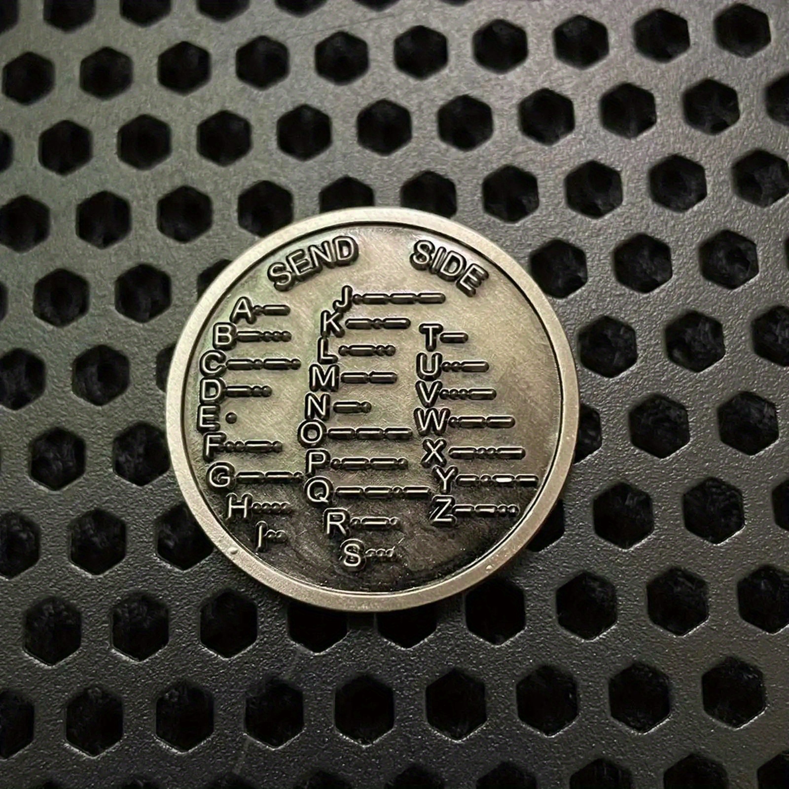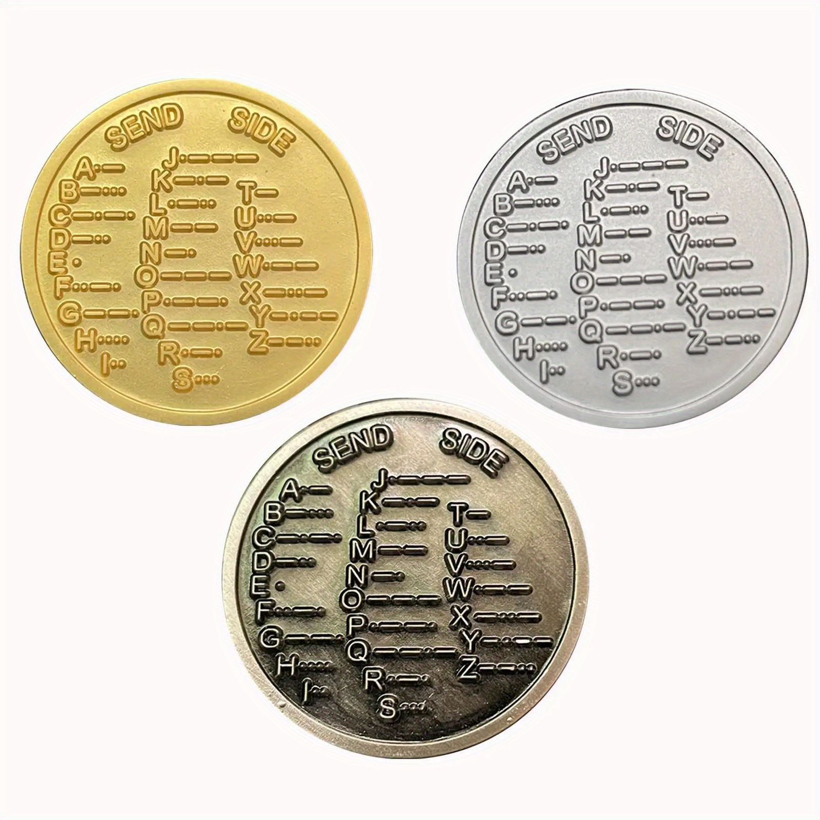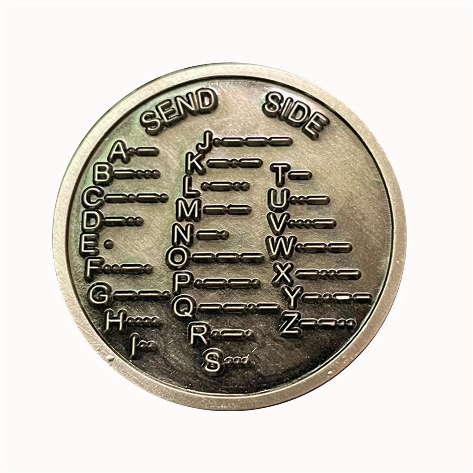 [Metal Morse Code Coin] Metal Morse Code Coin 1pc | Replica Commemorative Chip, Encrypted Language Game Entertainment Learning, Pocket Token